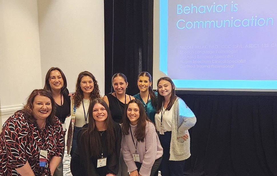 Members of NSSLHA attended the Pennsylvania Speech-Language-Hearing Association Convention this April in Pittsburgh. Students attended continuing education sessions and visited tables in the exhibition hall to learn about current evaluation and treatment approaches and products. The students joined faculty Dr. Nicole Billak during her presentation at the conference entitled Behavior is Communication: Managing Challenging Behaviors in a School Setting.