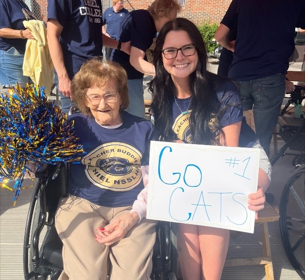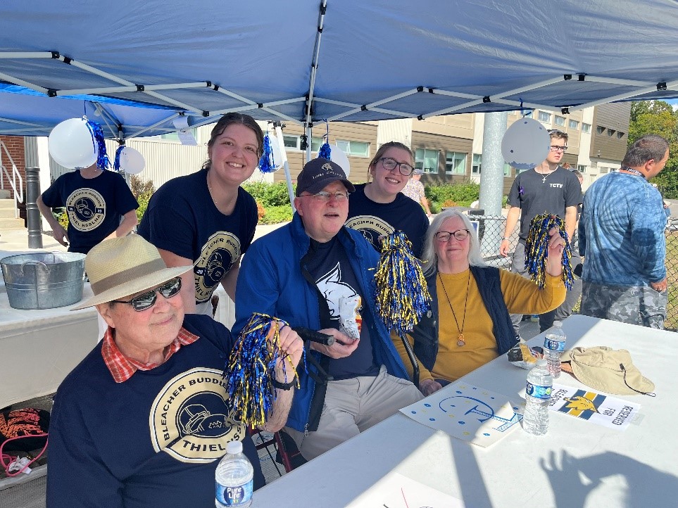 The Thiel College chapter of the National Student Speech Language Hearing Association (NSSLHA) was active this past fall semester. The students organized the third Bleacher Buddies event during Homecoming weekend. Fourteen residents and five staff members from St Paul’s Senior Community attended the Thiel Football game on October 30th. NSSLHA coordinated and hosted the event along with the Event Planner, Mimi Dreher from St. Paul’s. Free admission to the game, matching sweatshirts, and a catered lunch were provided. It was a beautiful day for the event and all the residents and student volunteers reported that they thoroughly enjoyed the game, food and refreshments, and especially the victory over Waynesburg University!