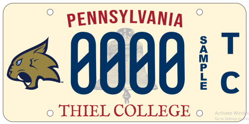 It's available for a one-time fee of $40. Anyone interested in obtaining a specialty plate can request an application by calling 724-589-2027 or alumni@thiel.edu.