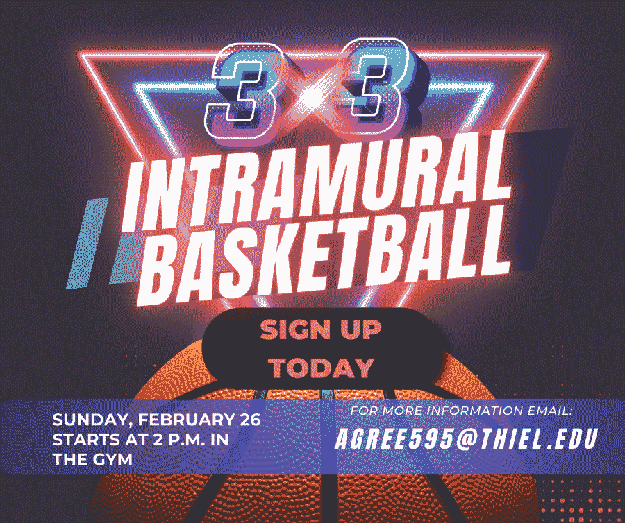 Thiel College Intramural Basketball is hosting a 3-on-3 Intramural Basketball Tournament.