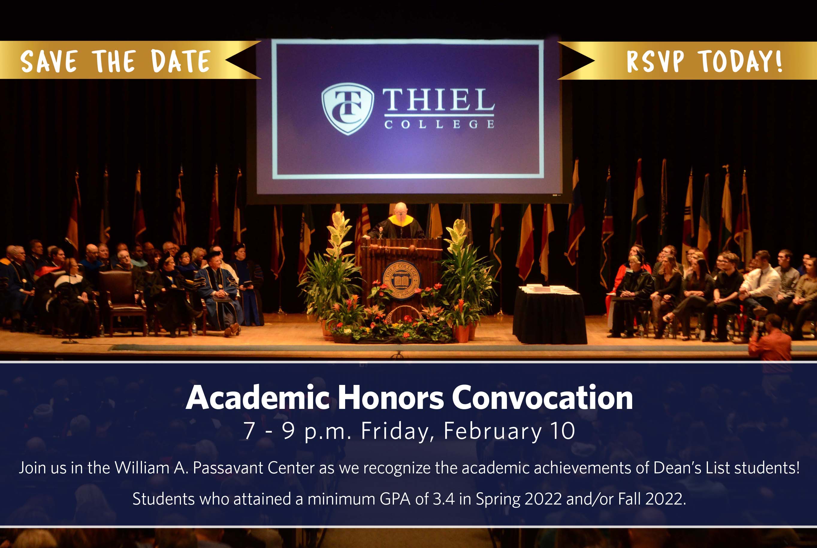 Since 1928, Thiel has annually celebrated the academic achievements of our students at the Academic Honors Convocation. This year, 409 students will be recognized for earning a GPA of a 3.4 and Dean’s List Honors at the ceremony held on February 10 at 7pm in the Passavant Center.
