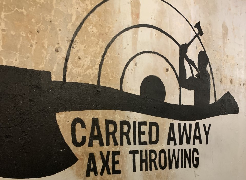 Free Axe Throwing for Thiel College Students at Carried Away Recreation in downtown Greenville with Student ID.