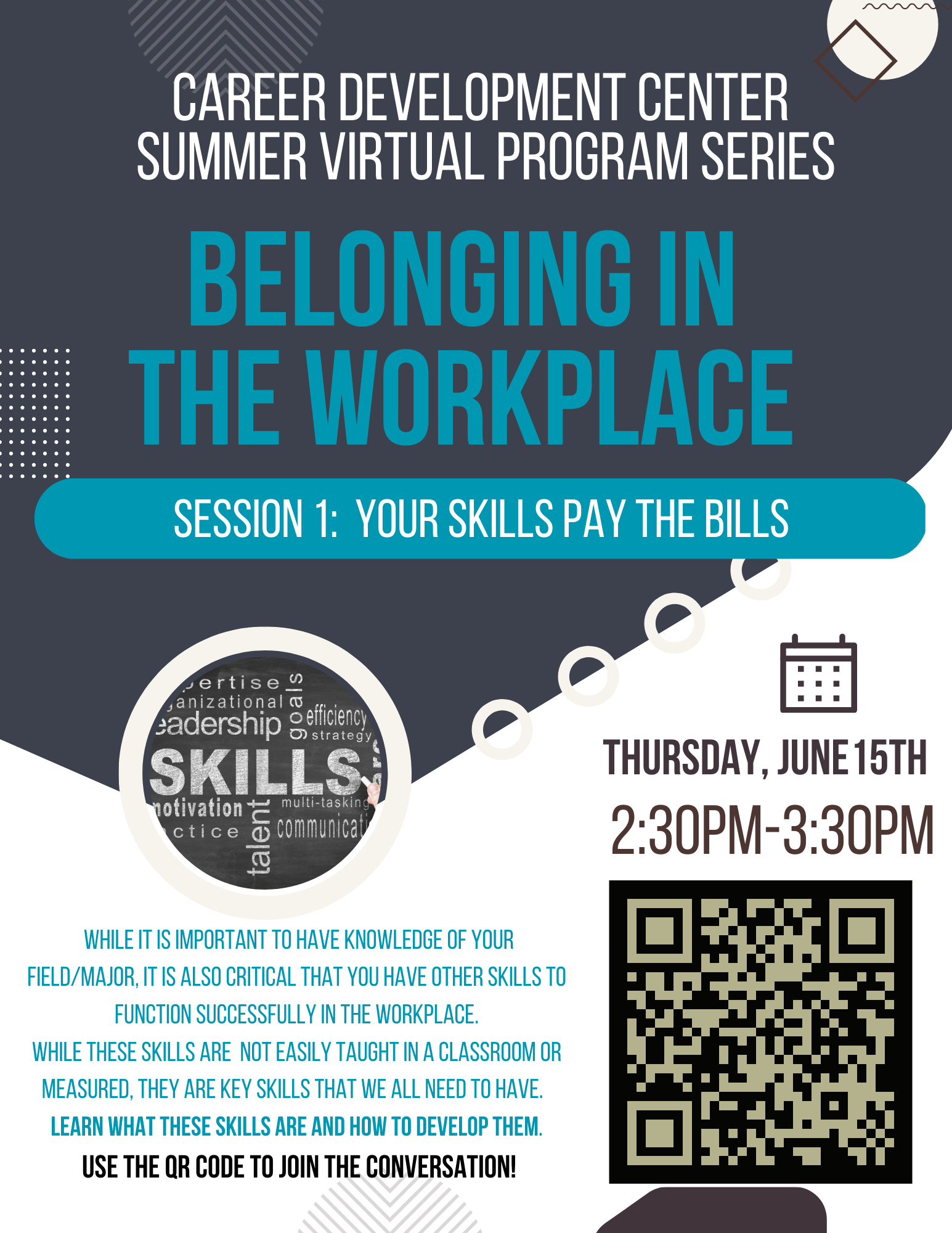 While it is important to have knowledge of your field/major, it is also critical that you have other skills to function successfully in the workplace. Since these skills are not easily taught in a classroom or measured, they are key skills that we all need to have. Join the virtual conversation & learn what these skills are and how to develop them.