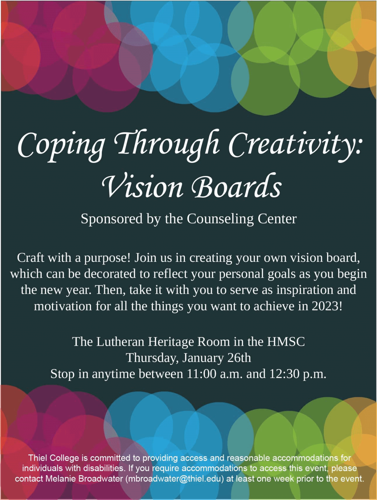 Thiel college is committed to providing access and reasonable accommodations for individuals with disabilities. If you require accommodations to access this event, please contact Melanie Broadwater at mbroadwater@thiel.edu prior to the event.