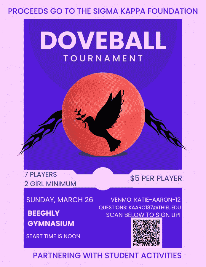 Doveball will be a Philanthropy event for the Sigma Kappa Sorority on Sunday, March 26th from 12 pm-8 pm.