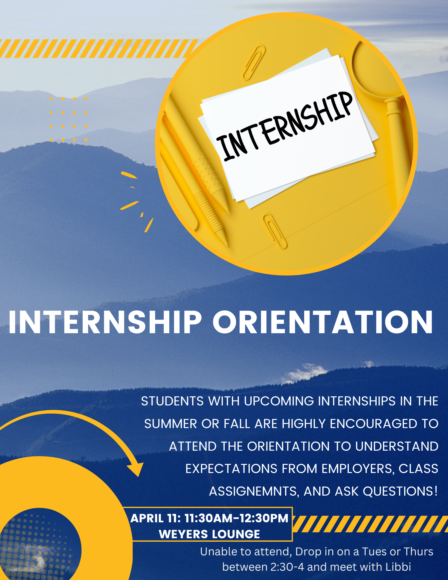 Students with upcoming internship opportunities are highly encouraged to attend the orientation to understand expectations from employers, expectations for the class portion, and ask any questions