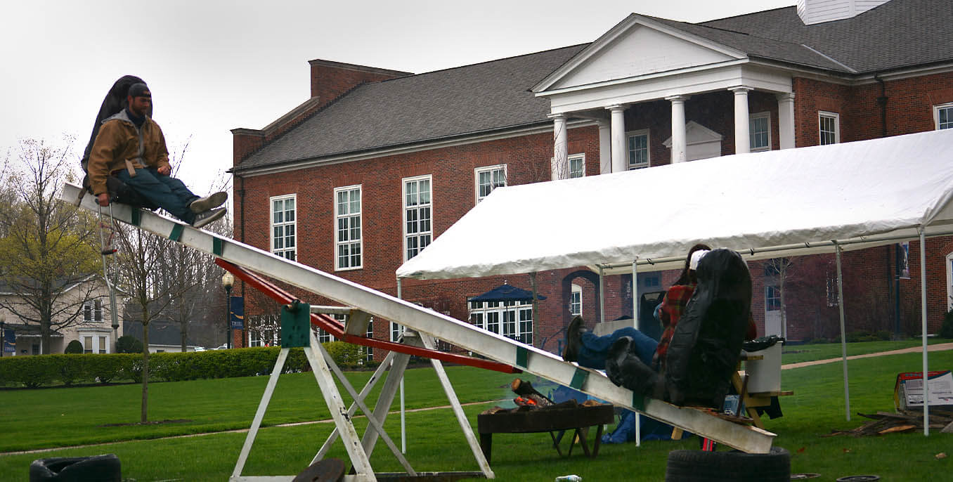 Every year, Kappa Sigma raises money for veterans by riding a seesaw for 72 hours consecutively.