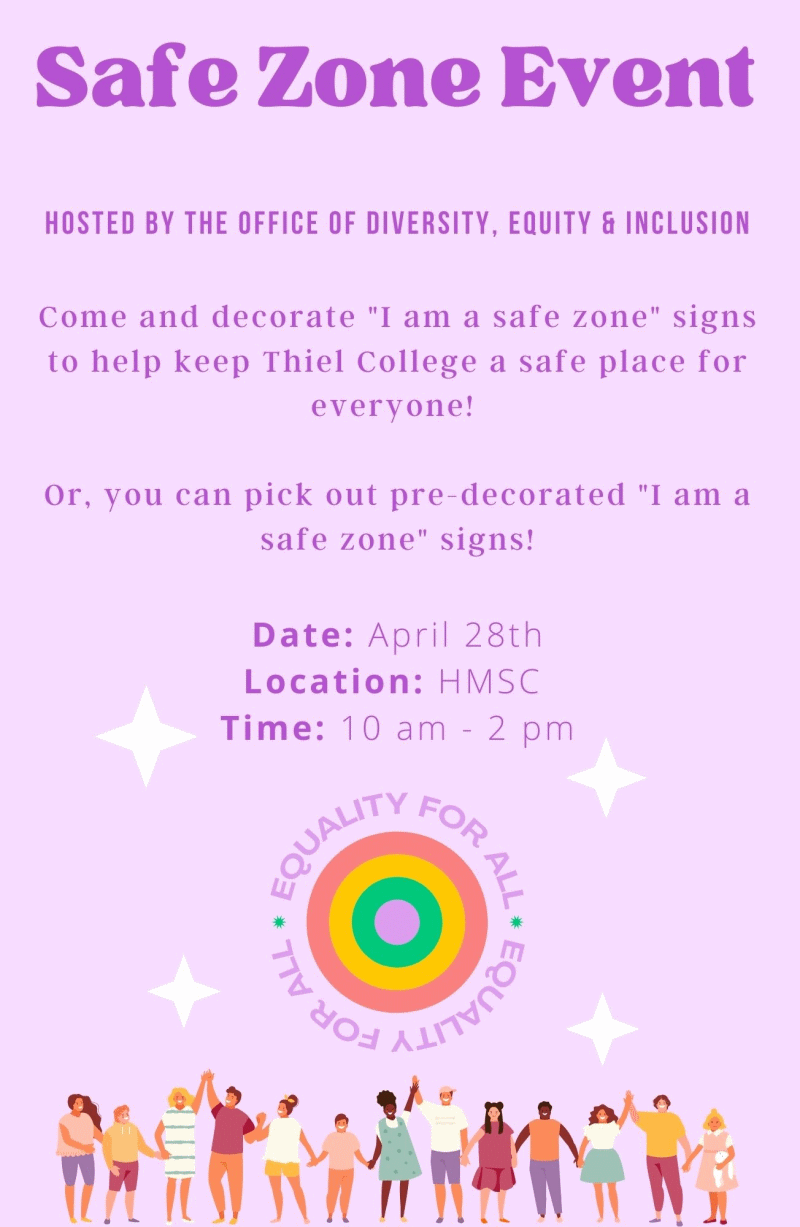 Come and decorate "I am a safe zone" signs to help keep Thiel College a safe place for everyone!