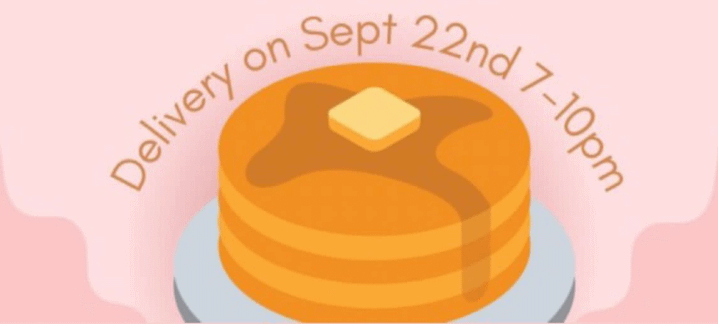 Put your order in today, have your pancakes delivered to you on Friday, Sept 22nd between 7pm and 10pm.
