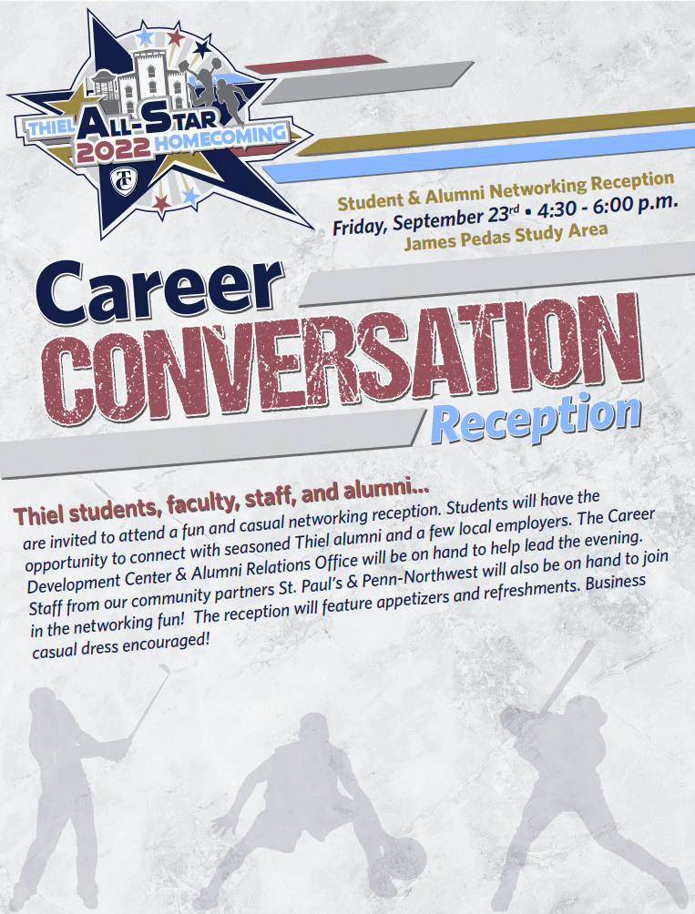 For questions, contact the Director of Alumni Relations - David Hummel at alumni@thiel.edu.