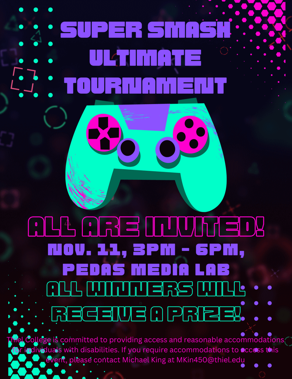 Super Smash Ultimate Tournament! All are invited! All winners will receive a prize!