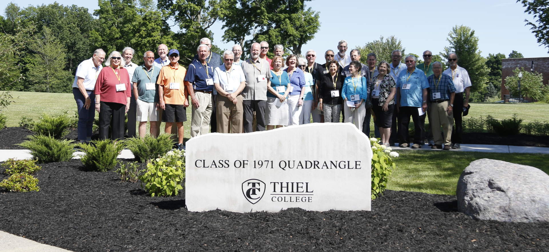 The Thiel College Class of 1971 dedicated the Class of 1971 Quadrangle on Saturday, June 15, 2024, to commemorate the rich history and significant contributions of the class. This event marked the recognition of a record-setting fundraising effort by the Class of 1971, who collectively raised an unprecedented $112,000 for enhancements to the area.