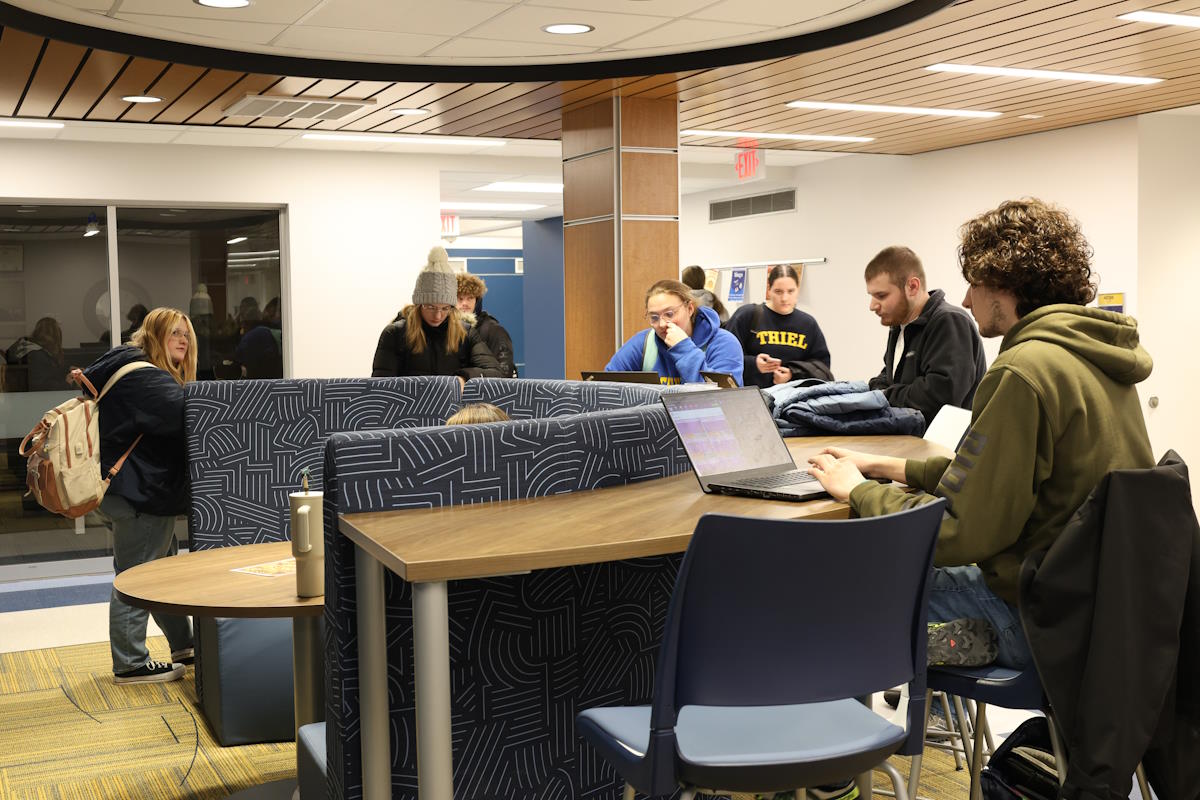 Phase II kicked off spring 2025 and included the Frangakis Business Hub office suites for Business and Accounting, Mathematics, Exercise Science and Biology, a technology-enhanced conference room to support the MBA program, a Physio Lab, the Margaret Boose Norris ’78 Solution Center, and Class of 1974 Atrium.