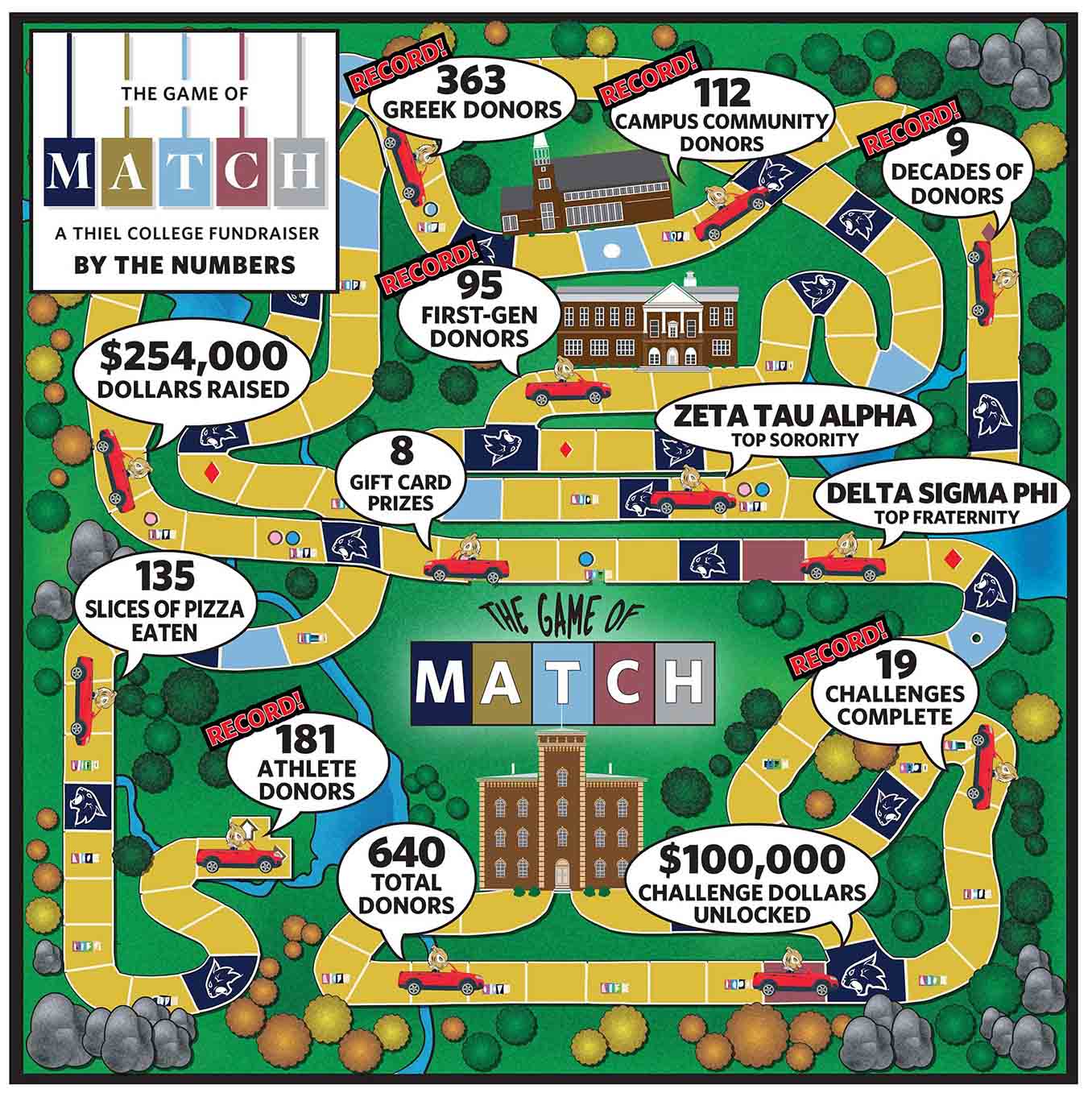 “Match Day highlights the care and generosity of the entire Thiel community,” said Thiel Fund Director David Mogle. “We are grateful for every individual donor who contributes at every level, but we also want to recognize the alumni and friends who step forward to create the affinity and group challenges that help power the day. Those matches spark friendly rivalries between Greek organizations, alumni decades, athletic teams and academic programs, and they encourage more Tomcats to participate. That spirit of competition and generosity is what makes Match Day such a special tradition for our College and such a meaningful investment in our students.”