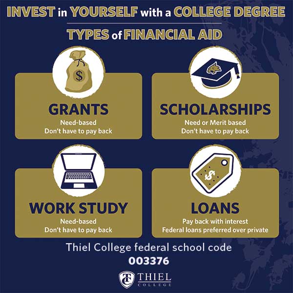 For more information about financial aid at Thiel College, contact the Office of Financial Aid at 724-589-2116.
