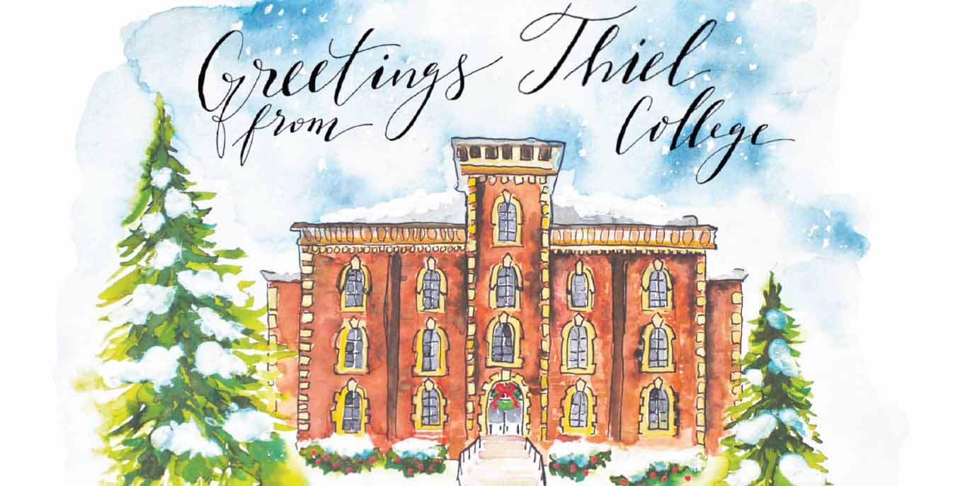 “What a joy to highlight the entrepreneurial and creative talent of Anna and Ava,” President Susan Traverso, Ph.D. said. “The watercolor featuring Greenville Hall is a great way to share the beauty of this important and historic building. Showcasing their artistic and business talent with the Thiel community was one of the highlights of the holiday.”