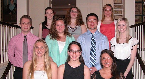 Kappa Mu Epsilon, a specialized honor society for Mathematics, initiated 11 new members on Sunday, April 13. The new members are: Anna Hart, Emily Howard, Kathleen Kent, Tanner Liptrap, June Longbine, Mary Oakey, Derek Runge, Kelsey Schneider, John Tenorio, Kayla Welty and Michelle Wimer.