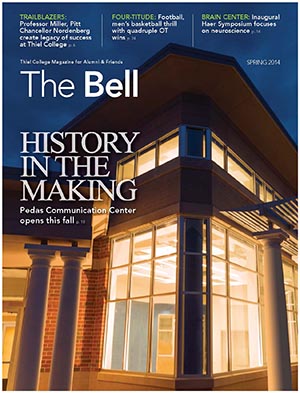 The Spring edition features a cover story on the Pedas Communication Center, information about the passing of Dr. Louis Almen, the second-longest tenured Thiel College president, the football and men’s basketball teams’ four overtime wins, and a profile of Founders’ Day honoree Mark Nordenberg.