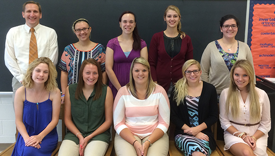 Pictured (from left to right): Sharpsville Area Elementary School principal and Thiel College adjunct professor Matt Dieter, Kenady Hubbard, Gwen Marker, Hannah Stoneman, Hannah Fernandez, Rebecca Campbell, Morgan Berg, Allison Williams, Hannah Duckworth, Sarah Jones.