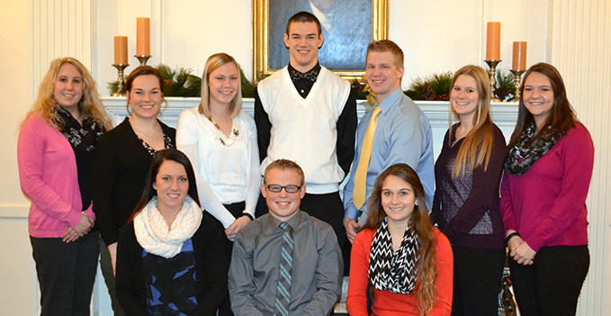 Thiel College student teachers are in classrooms for the spring 2015 semester. Front row (left to right): Morgan White, Duncan Wingard, Katelyn Downey; second row: Kayla Hibbard, Anna Hart, Emily Skebo, Nic Jones, Jacob Shaffer, Kristen Fedder, Kayleen Meardith.