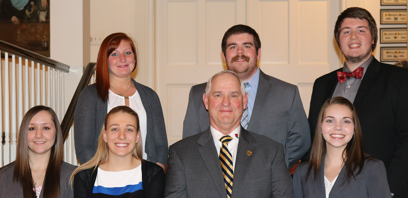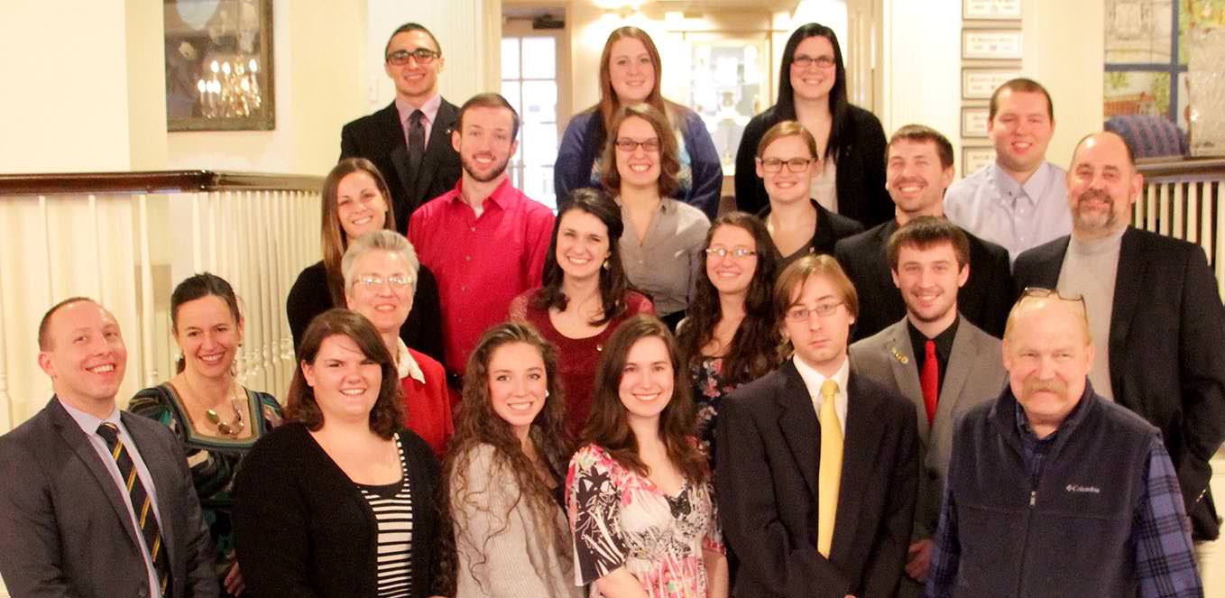 The Sigma Tau Delta English international honorary society held its 16th annual induction ceremony on Feb. 21. Alexis DeMott ’18, Tina Kramer ’18, Alison Schemrich ’18, Alayna Sharp ’18 and Stephen Staats ’17 were inducted into the Alpha Iota Kappa Chapter.