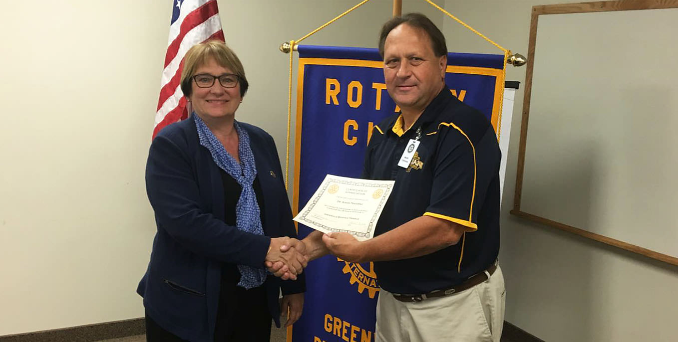 President Susan Traverso, Ph.D., is presented with a certificate of acknowledgment for speaking at last week’s luncheon by Rotary Club President Mark Ferrara.