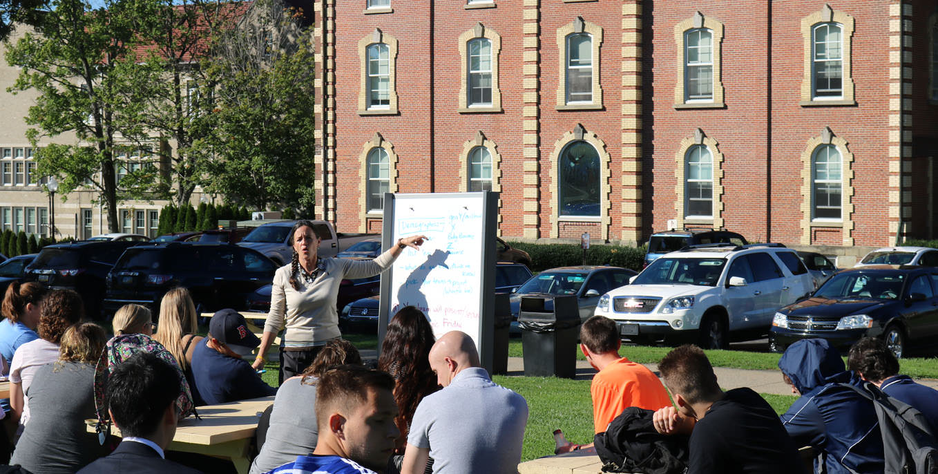 Assistant Professor of Business Administration and Accounting Karen Shaffer took her class outside Wednesday morning.
