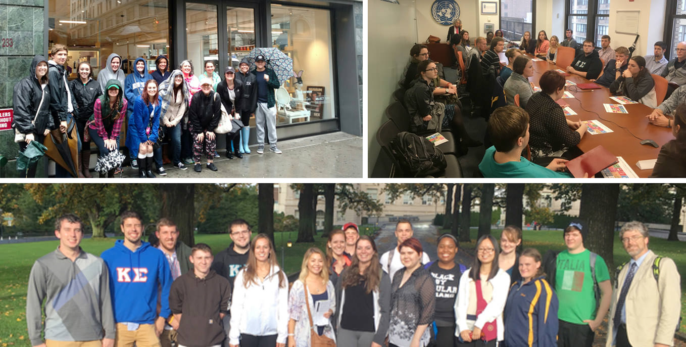 Last week, Thiel College students were on the road pursuing careers and career learning in three different markets all on the same day. The travel began at midnight Thursday when approximately 100 students headed to New York City. Among the students were three classes: two from Professor of Biology Fatimata Pale, Ph.D., and one from Laura Pickens, Ph.D. ’06.