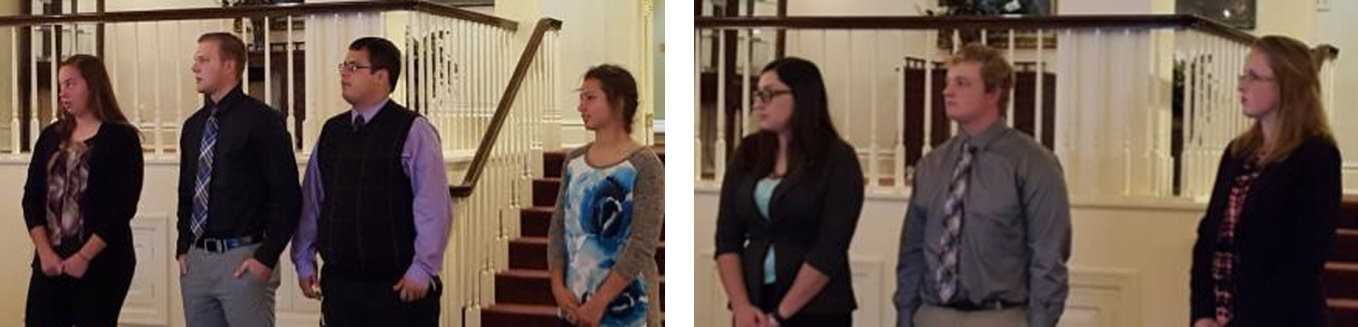 Eleven students were inducted into the chapter. Admitted to full membership were Brooke Gates ’18 (pictured above left), Caitlyn Carney ’17, Crystal Carradine ’18, Nick Grice ’18 (pictured above left), Jonathan Papa ’18 (pictured above left), Josh Ross ’17, Shannon Simpson ’18, and Elizabeth Wilkinson ’17 (pictured above left).