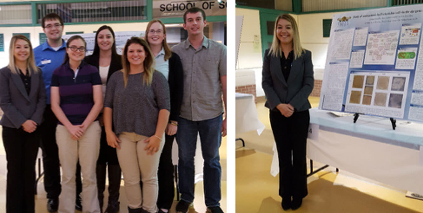 Seven biology majors along with Assistant Professor of Biology Sarah Swerdlow, Ph.D., attended the Allegheny Branch of American Society of Microbiology meeting on Nov. 11-12 at Penn State Behrend in Erie, Pa. The students in attendance were front row (L-R): Morgan Murphy ’17, Crystal Carradine ’18 and AJ Corradi ’18, and back row Jason Takacs ’18, Katie Altman ’19, Jessica Orczeck ’18 and Cody Deluisio ’17.