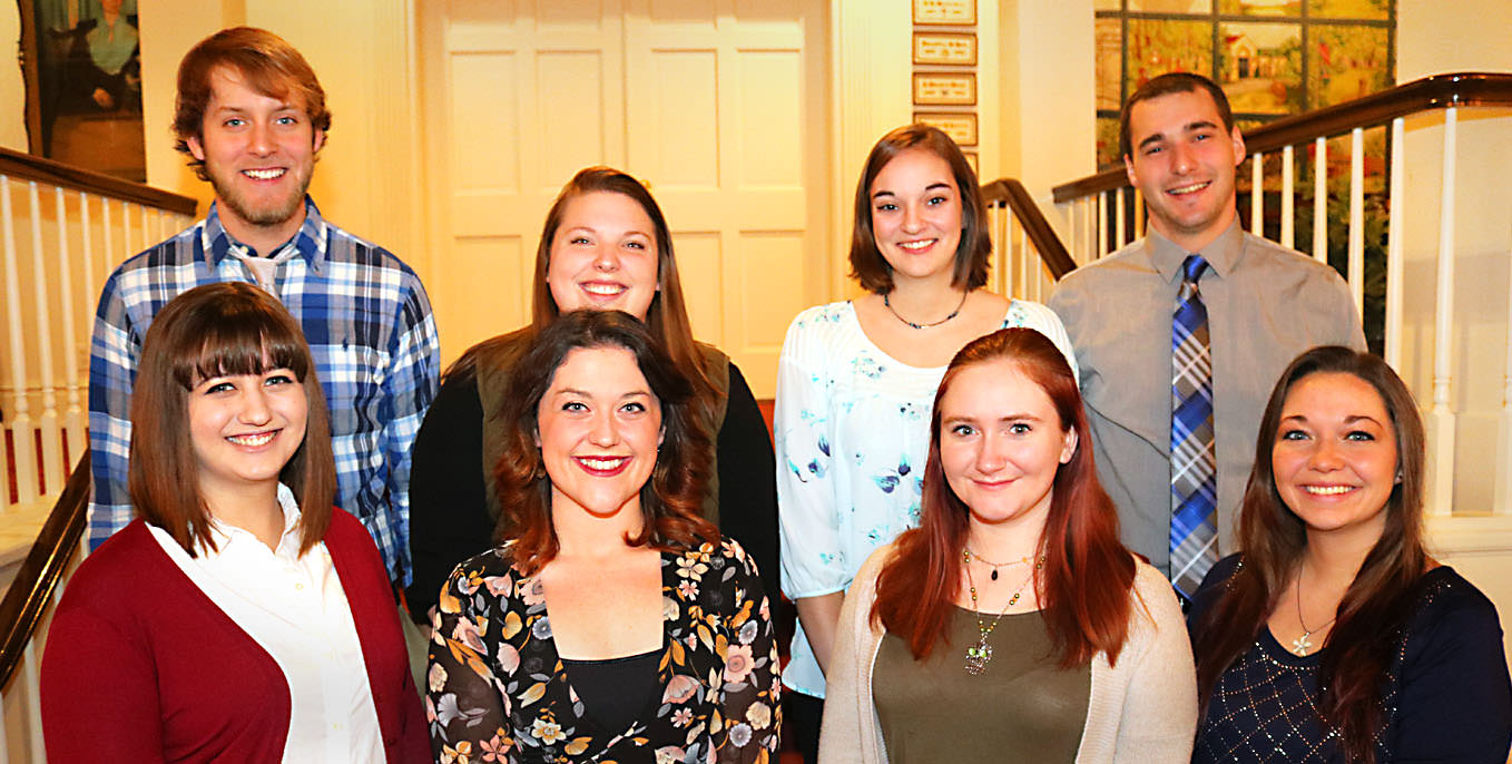 Student teachers for the spring 2017 semester. Front row (left to right): Jennet Bertmeyer ’17, Lacey Weaver ’17, Ashley Johnson ’17, Keri Alston ’17; back row: Colby Howe ’17, Amber Port-Fischer ’17, Natalie Beckwith ’17, Alex Horvatits ’17.