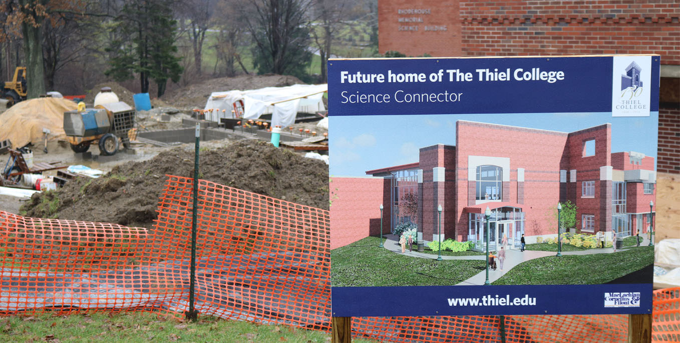 Work is progressing on the science connector project, which will add about 8,500 square feet of collaboration, academic and lab space. The connector is on schedule for a July completion date and dedication at Homecoming 2017.