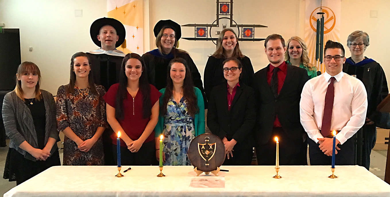 Twelve students were inducted into the Thiel College Theta Chapter of Alpha Chi on Jan. 27 in the David Johnson Memorial Chapel. Alpha Chi, a national honorary fraternity which recognizes students who have achieved high academic standing, is one of only four national scholarship societies admitting to membership superior junior and senior students irrespective of their fields of study.
