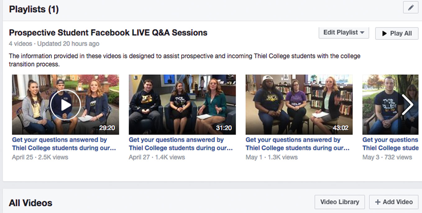 The offices of Admission and Communications and Marketing worked together to produce Thiel College’s first Facebook LIVE question and answer sessions hosted by current students.