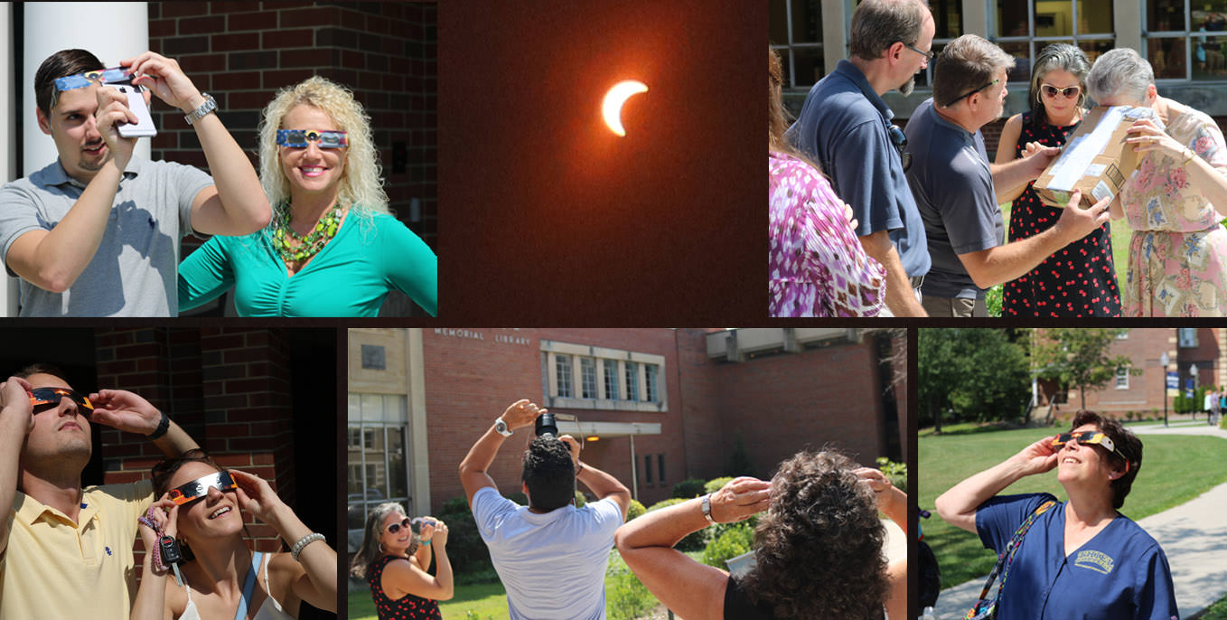 Many Thiel College staff and faculty grabbed a break Monday afternoon to take in the solar eclipse. Assistant Director of Digital Marketing Mike McElroy snapped the picture of the eclipse and the different employees around campus witnessing the event.