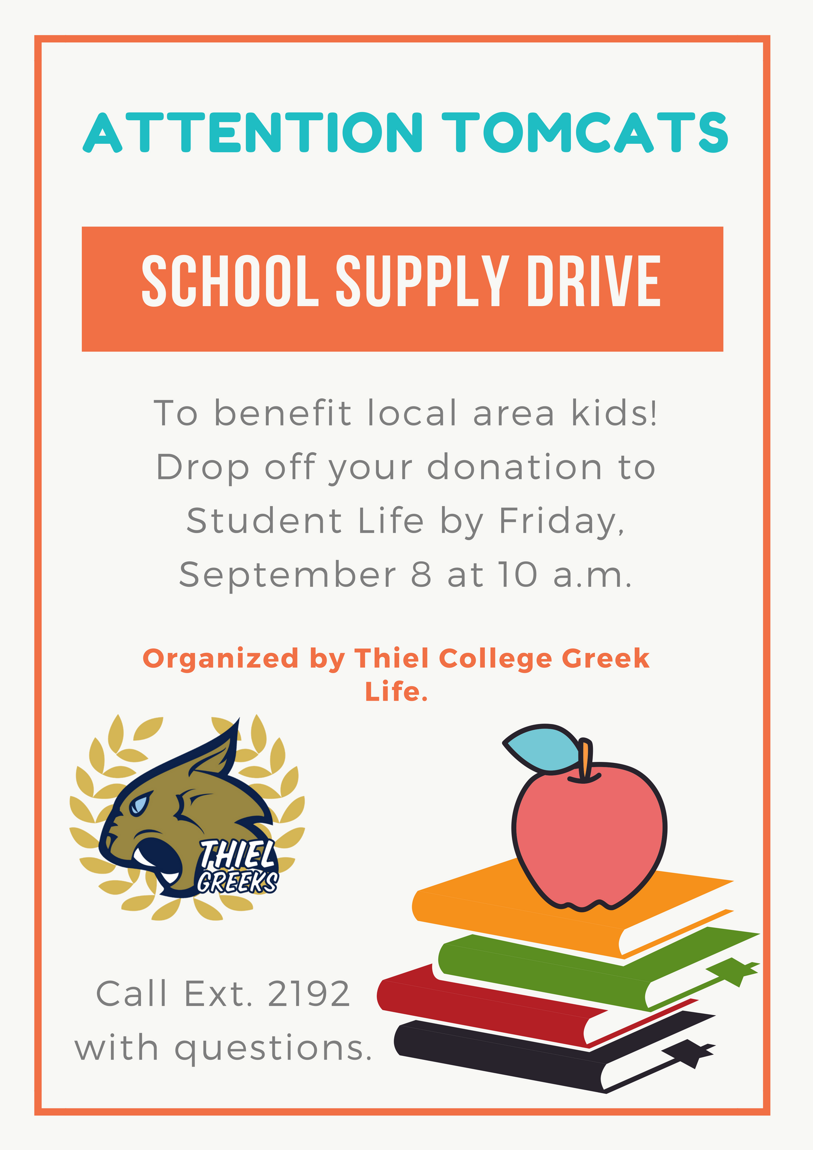 Members of Thiel College’s Greek Life organizations are collecting school supplies for Mahoning Valley elementary students. Donations can be dropped off Friday in the Student Life office.