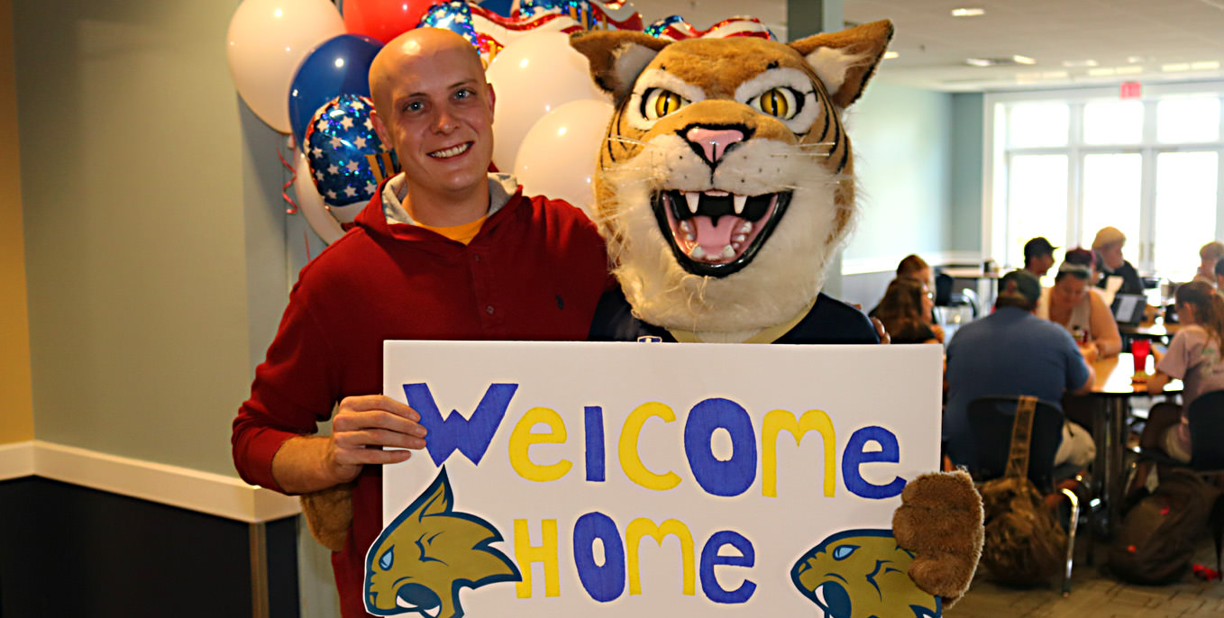 Dustin Slomainy returned from his third tour of duty to visit campus on Sept. 22. He plans to re-enroll in spring 2018. Slomainy was deployed with the U.S. Army Reserves in Kuwait. Slomainy is a 2005 graduate of Valley High School in New Kensington, Pa.