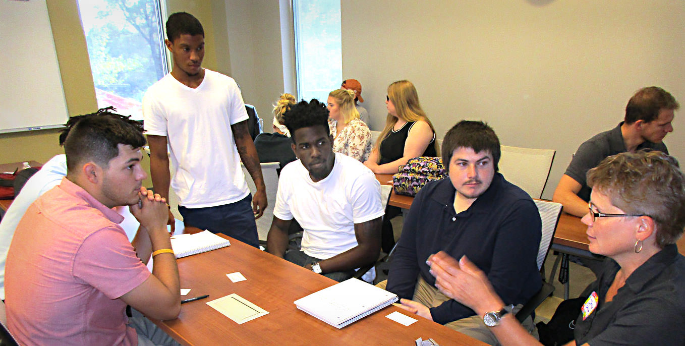Representatives of the United Way of Mercer County and Meals on Wheels, Mercer County Trails Association, Riverside Revitalization Fund, Shenango River Watchers, and the Greenville Chamber of Commerce met with students to discuss ways students could help with service-oriented projects.