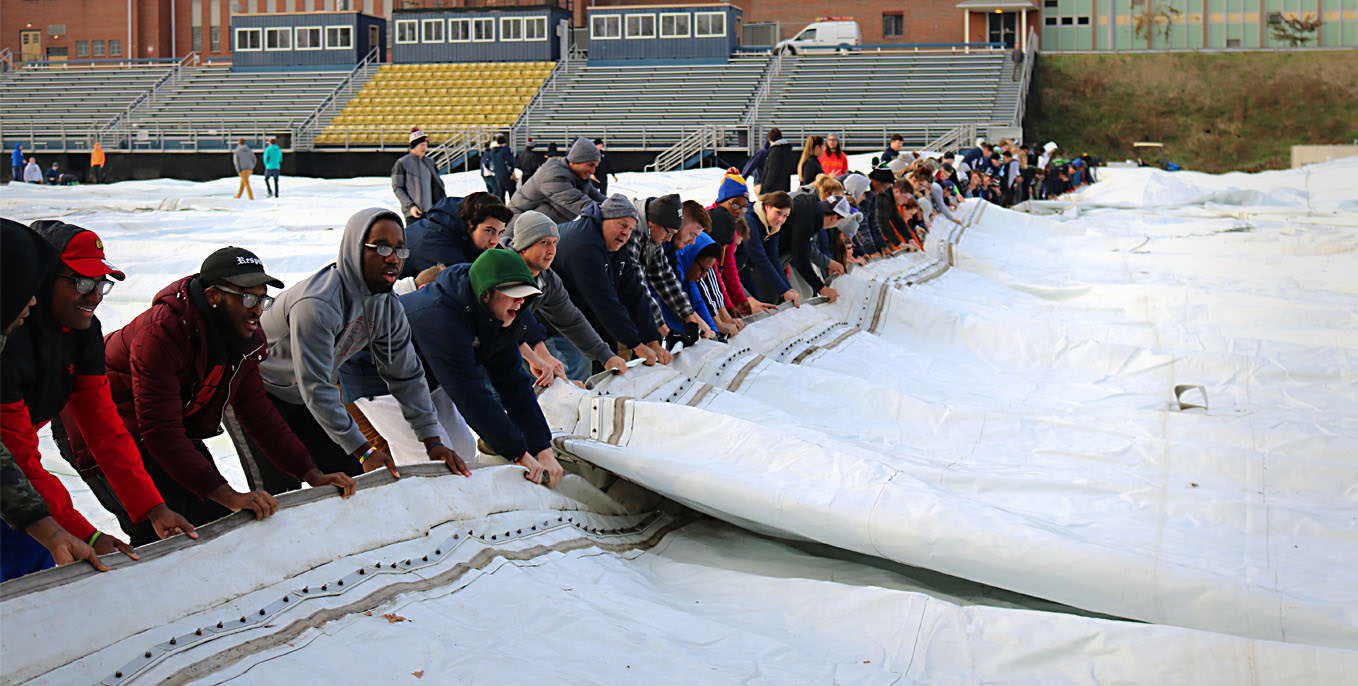 The Rissell-Schreyer Dome was inflated Wednesday morning. Faculty, staff and students worked together to construct the dome Tuesday afternoon.