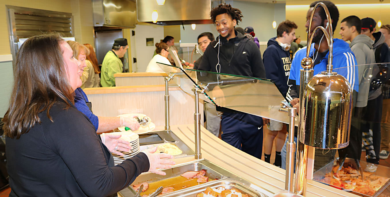 Building on the popularity of the late-night breakfast, campus employees joined together to serve Thanksgiving dinner to the students on Tuesday evening.
