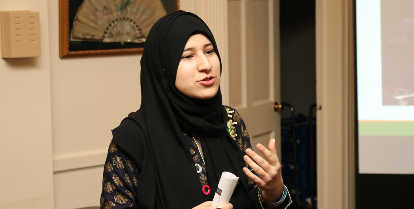Seema Laila, from Islamabad, Pakistan, is spending the spring semester at Thiel College. Wednesday afternoon she spent about 90 minutes discussing Pakistani culture with Thiel College faculty and staff. Laila is in the United States as part of the IREX program. IREX is a nonprofit organization committed to global development and education.