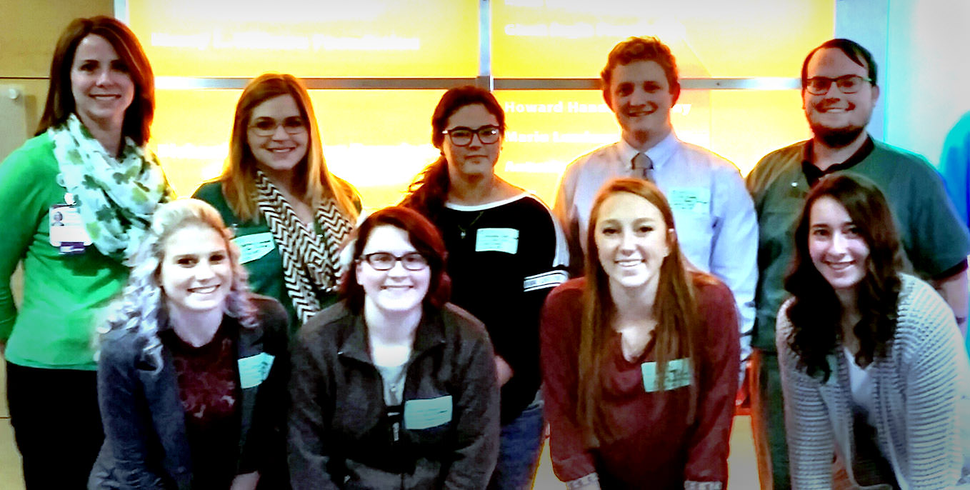 Pictured (L-R) front row: Jessica Campbell ’19, Julia Wagner ’21, Sarah Nagy ’20, Joelle Reitz ’18; back row: Heather L. Ambrose ’00, Courtney Campbell ’20, Miranda Reesman ’18, TJ Fisher ’18, and Evan Youker ’18.