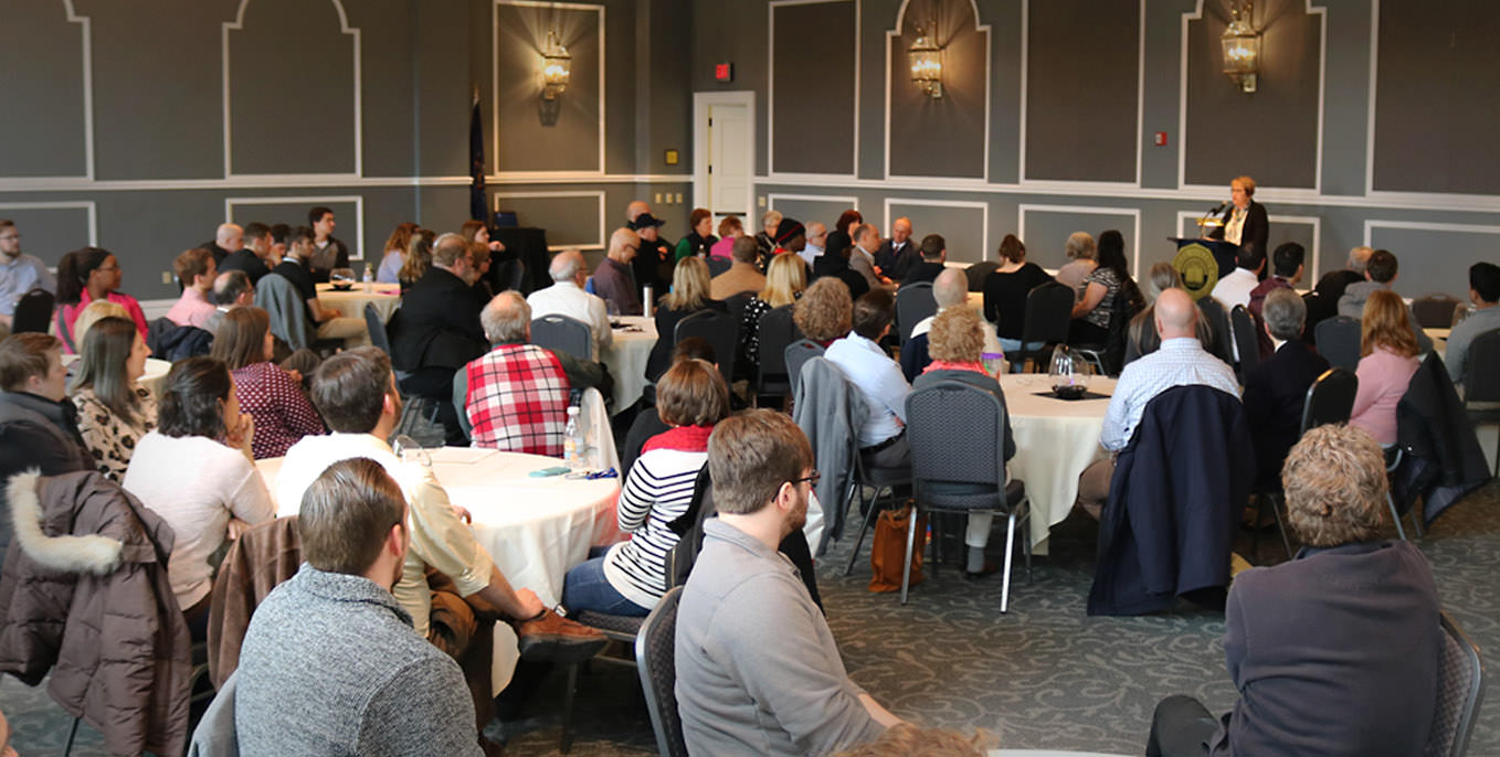 More than 80 students, faculty and staff listened to a presentation by President Susan Traverso, Ph.D., Tuesday afternoon during the first installment of what organizers hope will become an annual campus event.