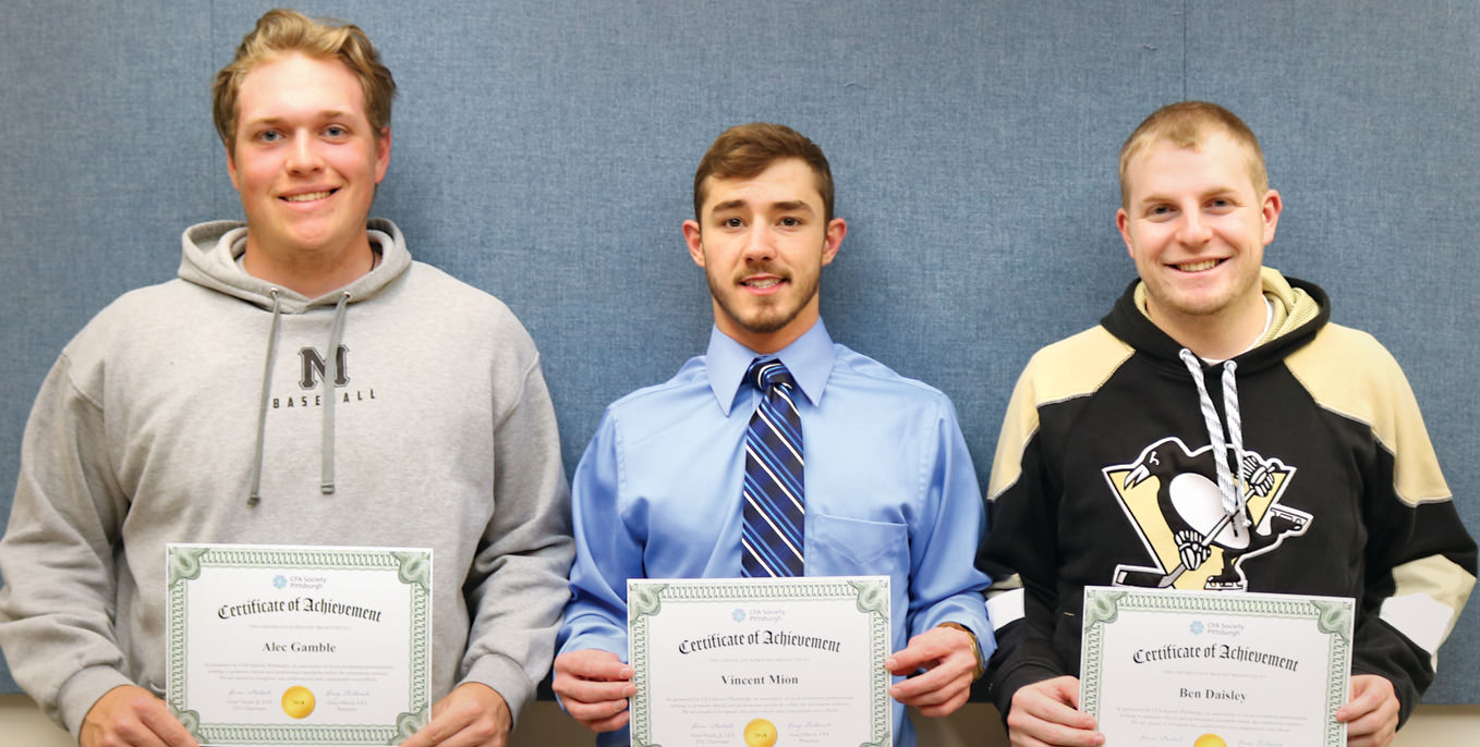 The financial plan developed by Alec Gamble ’20 (left) placed among the top 10 among 253 entries from colleges and universities from all over Pennsylvania in the 2018 CFA Financial Plan Contest put on by the Pittsburgh CFA Society. He was awarded a cash prize.