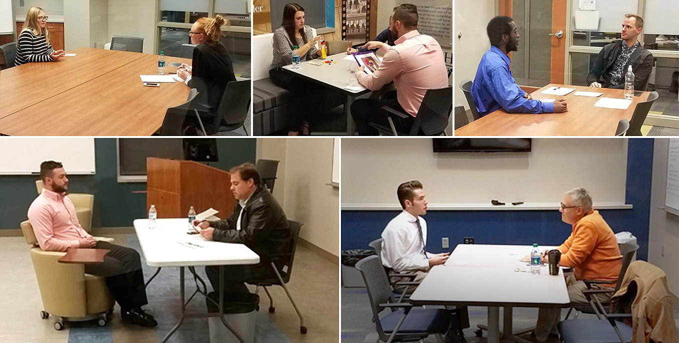 Health Professions Institute students participated in a multiple mini-interview session last week. Every seven minutes students rotated to a new station and interacted with a new interviewer. Stations included an active listen scenario, issues in medical ethics, rural healthcare, and others. HPI members want to thank, Executive Director of Communications and Marketing Richard Orr, Professor of Philosophy and Dietrich Honors Institute Director Matt Morgan, Ph.D., Senior Admissions Counselor Morgan Steiner ’16, Director of Greenville Neuromodulation Center Ben Beck ’10, Healthcare Consultant Anne Butcher, TJ Fisher ’19 and Joelle Reitz ’19.