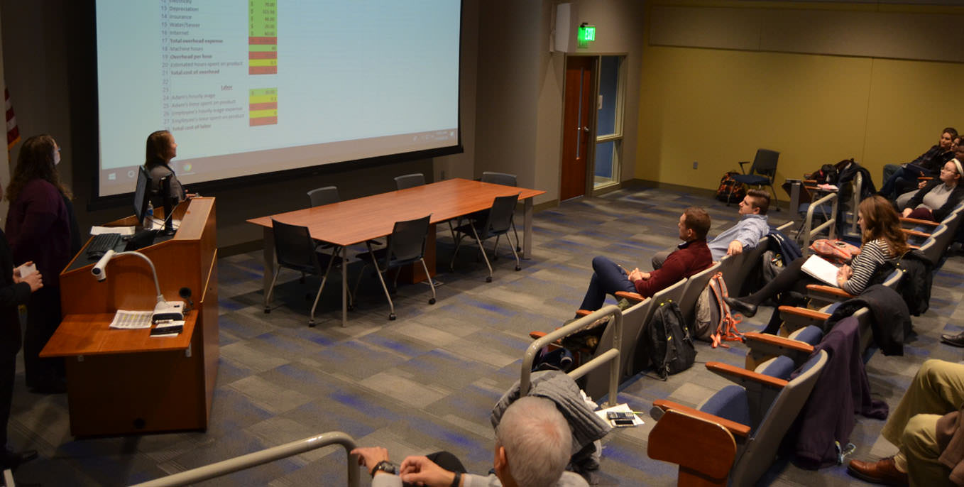 The five students presenting the plan were Madalyn Harding ’19, Terri Eddy ’19, Brianna Gibbs ’19, Corrine Hankin ’19, and Brittany Jackson ’19. Their plan covered food options, technology, community, housing and maintenance issues, and the Thiel experience. A question and answer period followed with Dr. Traverso getting additional input from students.