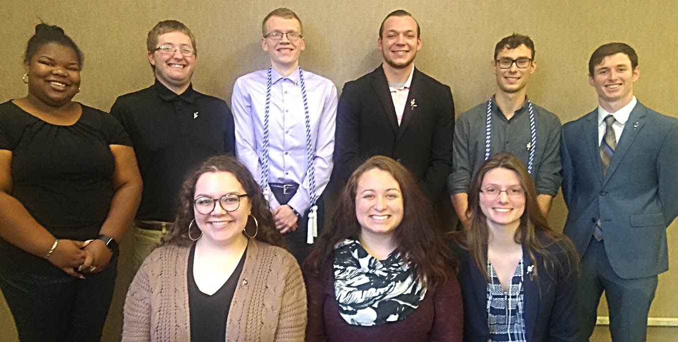 Pictured (L–R): front row: Mariel Hanely ’20, Elizabeth Grasso ’19, and Corrine Hankin ’19; back row: Brianna Gibbs ’19, Phillip Brewer ’19, Zechariah Dubel ’20, Jacob Morgan ’19, Zachary Sumner ’19 and David Pugh ’19.