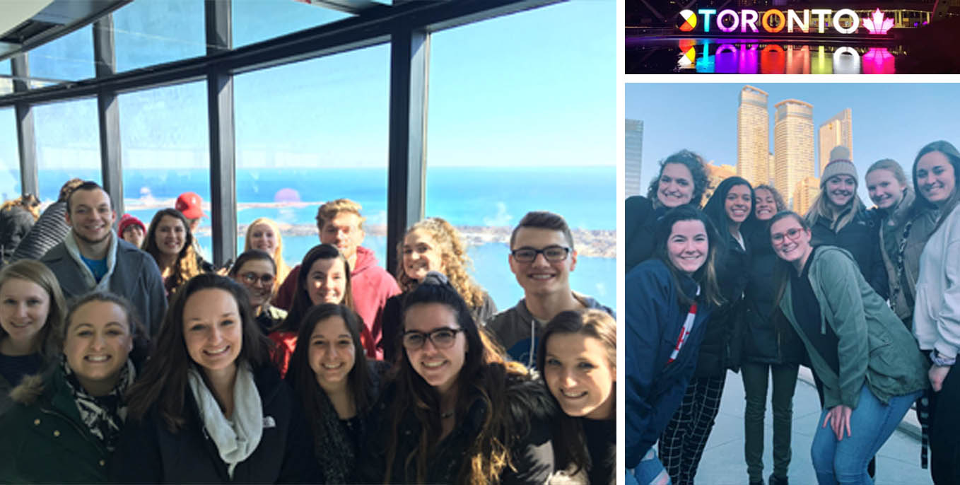 Forty-eight Dietrich Honors Institute students toured Toronto from March 22-24. Some of the activities students enjoyed included a comedy show at The Second City Theater, viewing exotic sea life at Ripley’s Aquarium of Canada, experiencing the arts at The Royal Ontario Museum, observing the city from the CN Tower, shopping at the Toronto Eaton Centre, and stopping by Niagara Falls on the return trip. Apart from the planned activities, students had the opportunity to try many exotic cuisines from Greece, Italy, and Morocco. For many students, this cultural outing was their first time in a foreign country.