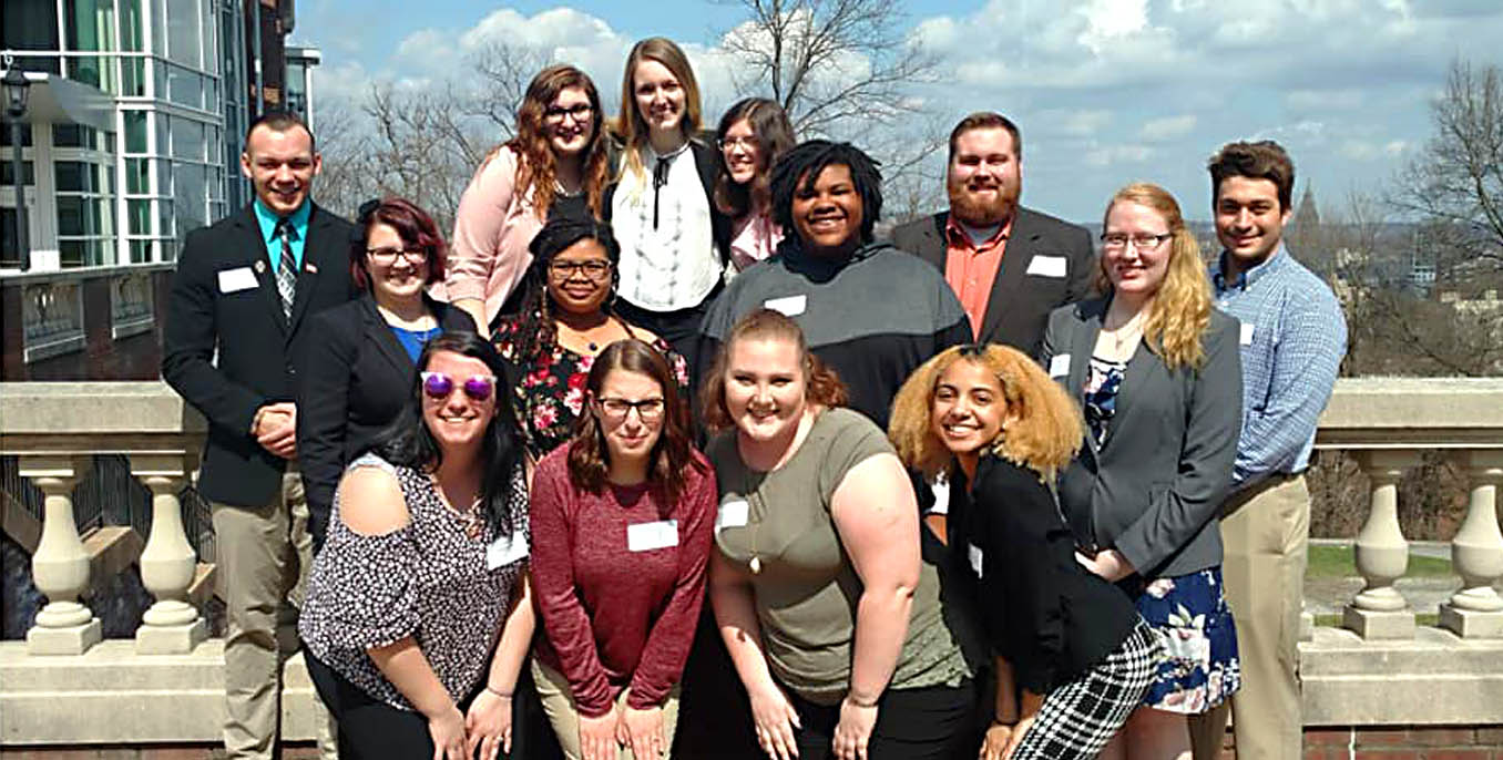 Top (L-R): Jake Morgan ’19, Laura Hardner ’19, Kristyn Kinner ’19, Theresa Kretzmer ’20, Cam Neal ’19, Gage Gladysz ’19; middle: Julia Wagner ’20, Tanyra Williams ’19, Austin Bowman ’20, Ashley Mangel ’19; front: Katie Campbell ’19, Brooke Gosnell ’21, Kristen Brunner ’21 and Stacy Reecks ’21