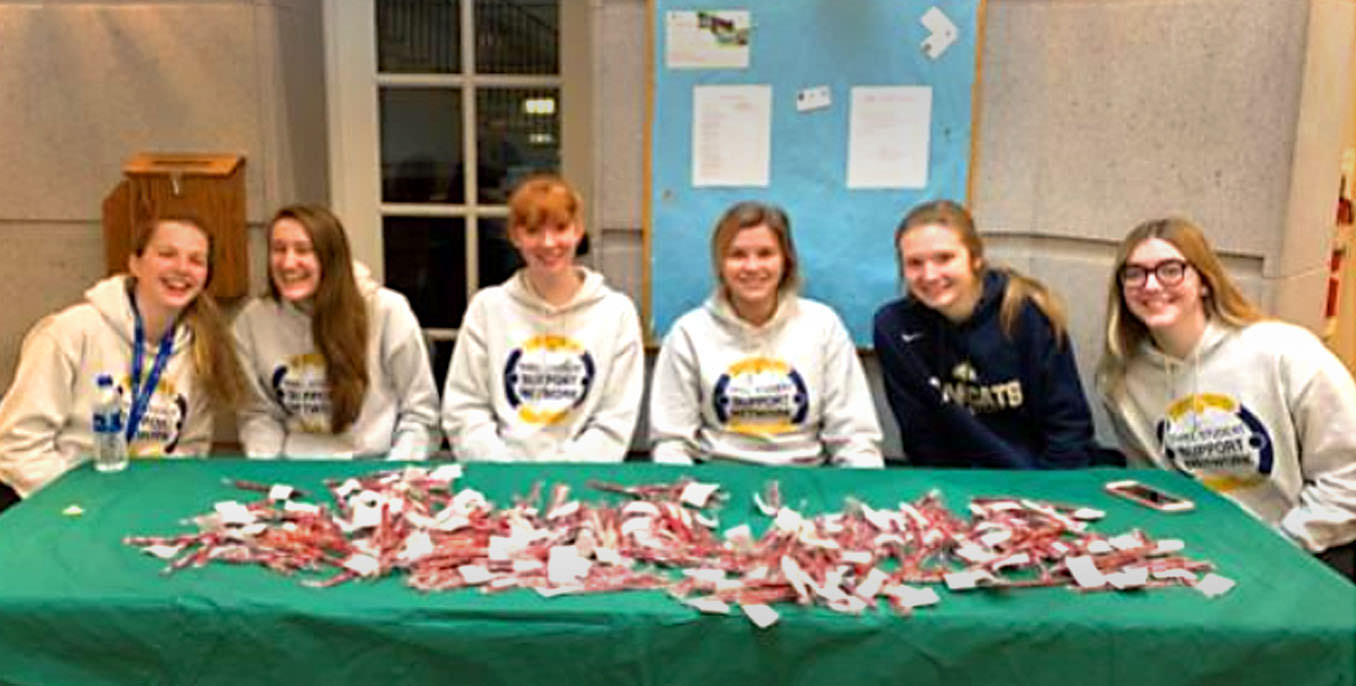 Pictured are Nu Rho Psi members back row (L-R): Gage Gladysz ’20, Evan Youker ’19, Joelle Reitz ’19, Jill (Shackett) Haer ’66; front row Julia Wagner ’21 and Miranda Reesman ’19.